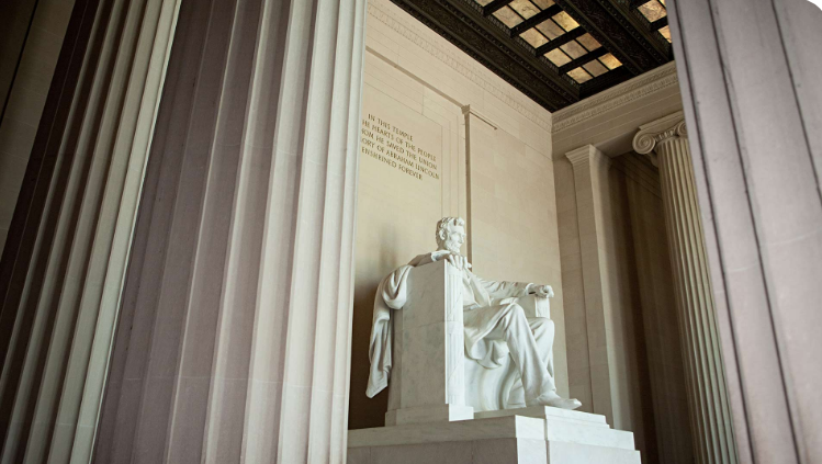林肯纪念堂是一座通体洁白的古希腊神殿式建筑,为纪念亚伯拉罕·林肯而建,被视为美国永恒的塑像和华盛顿的标志。马丁·路德·金就在这里发表了演说《我有一个梦想》。